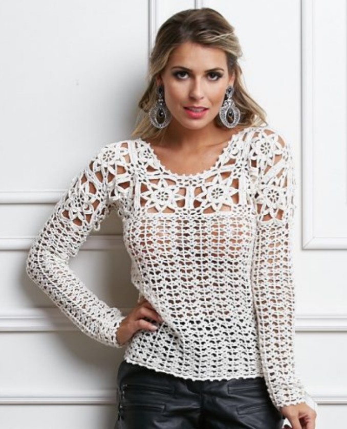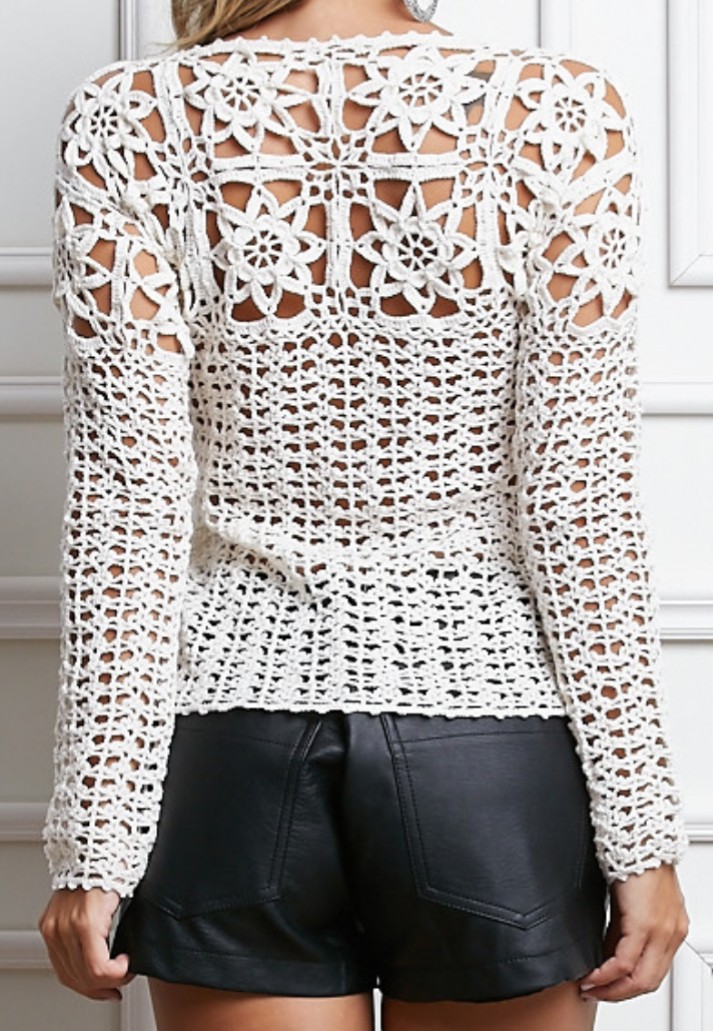 Adicione um toque de estilo boho descomplicado ao seu guarda-roupa com esta linda blusa de crochê feito à mão.
