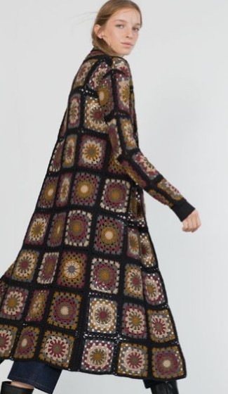Com padrão de quadrados granny squares, este casaco é muito quentinho e tem um acabamento de confortável e de qualidade.