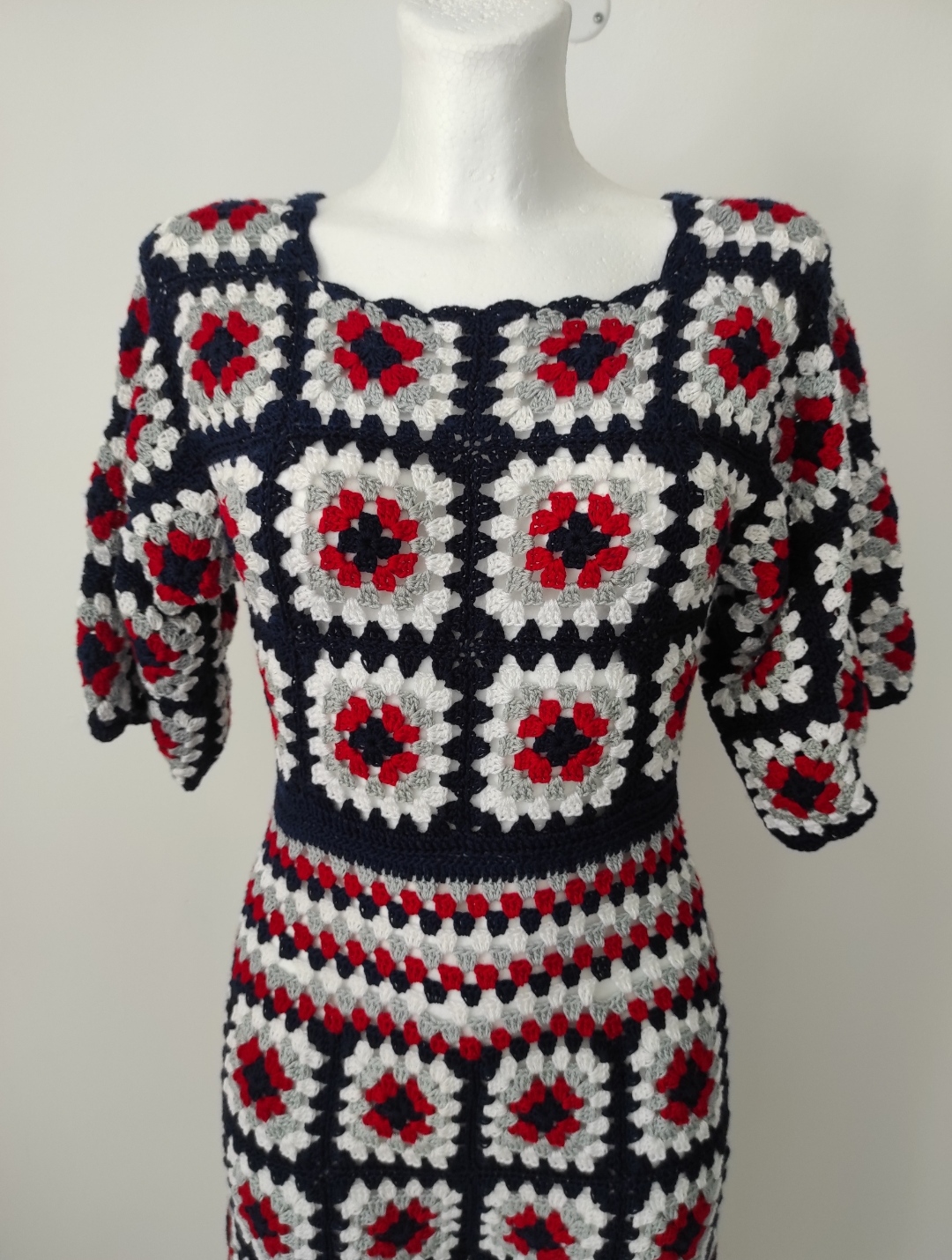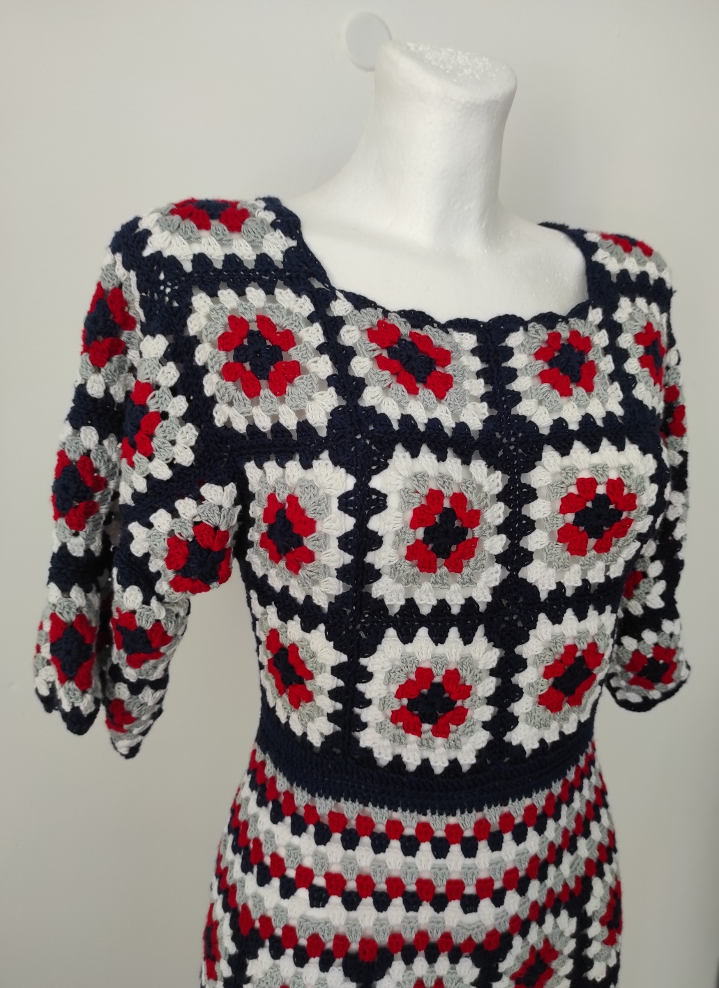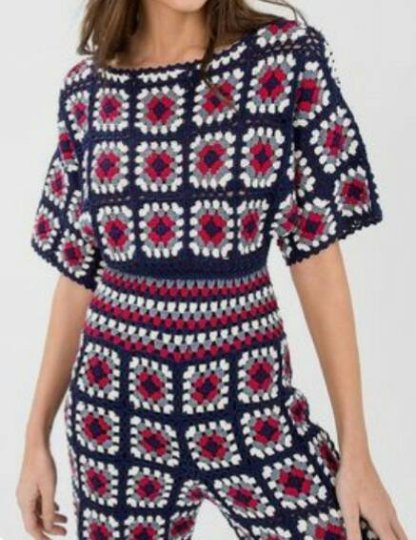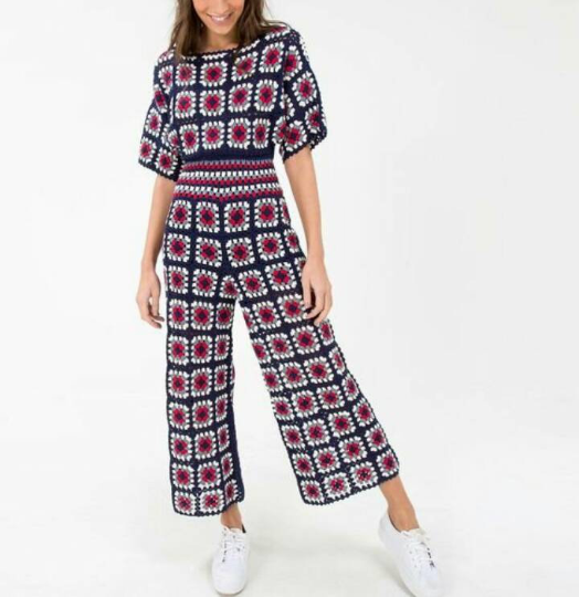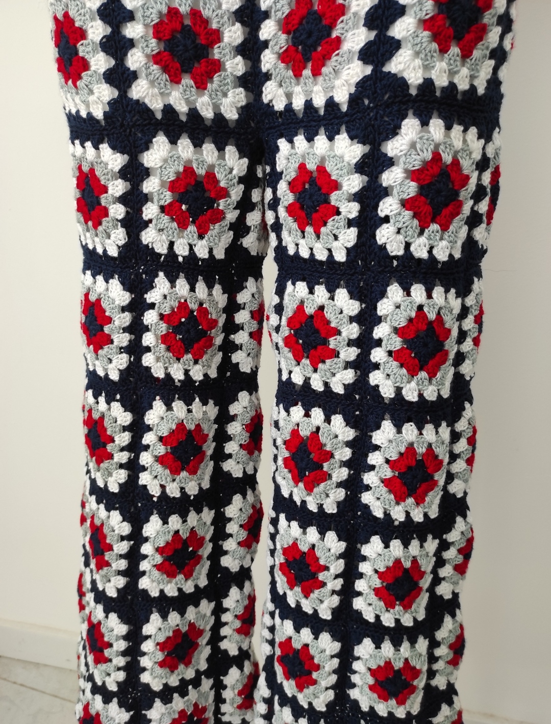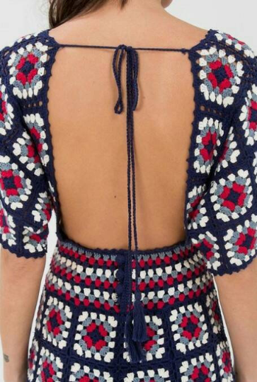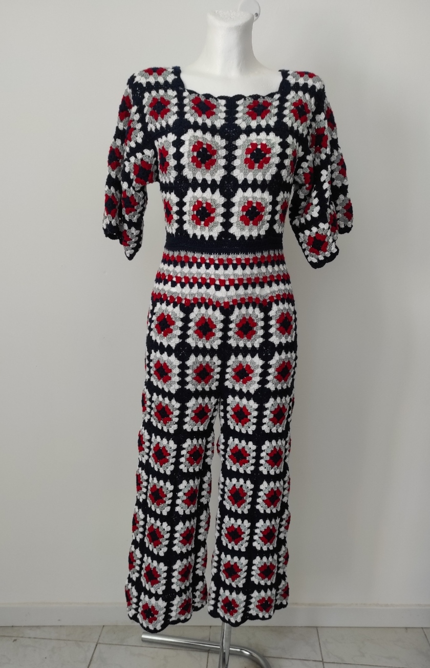 Macacão aos quadrados sem costas boho em crochet feito à mão em algodão.
