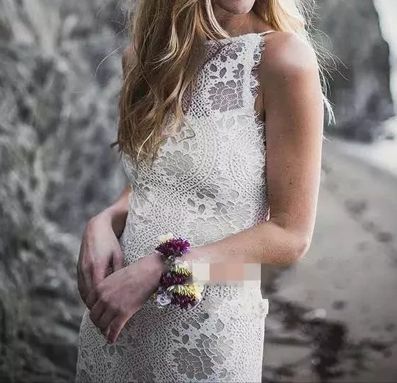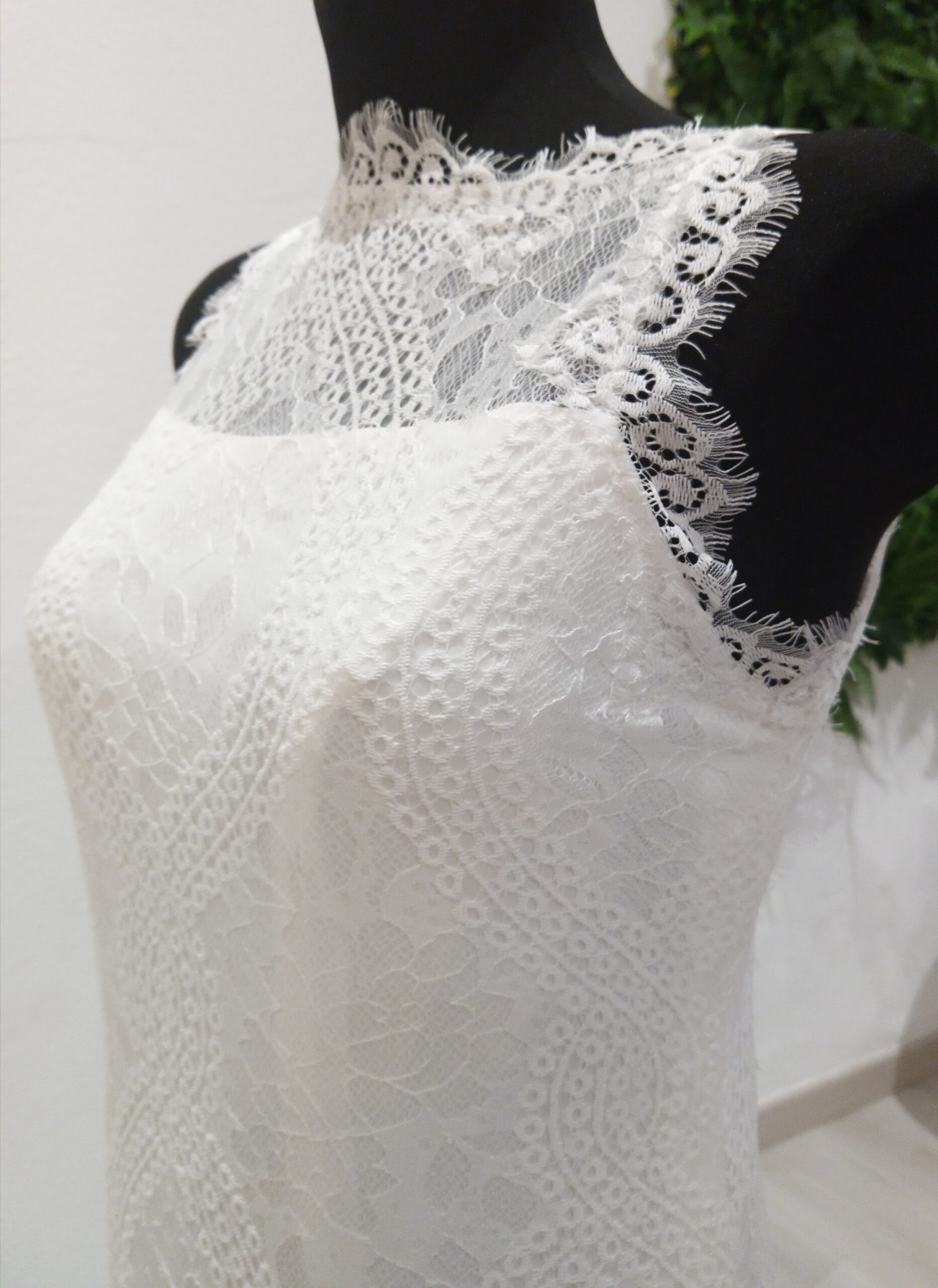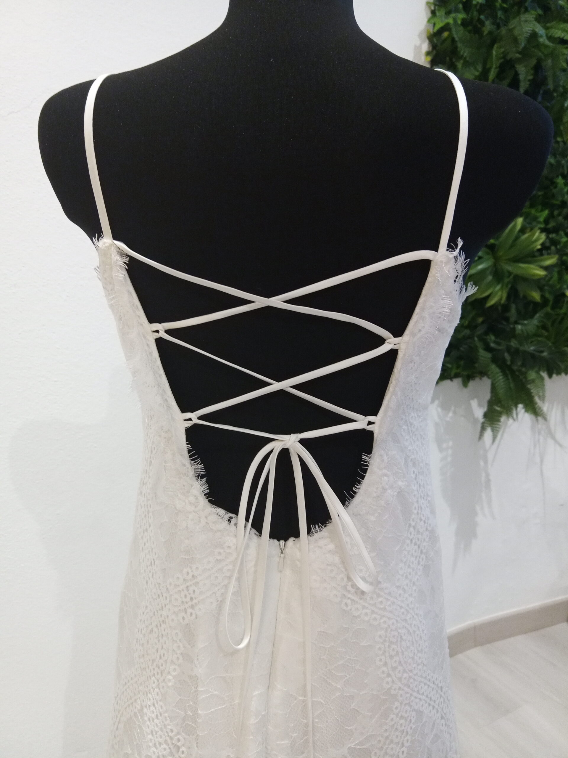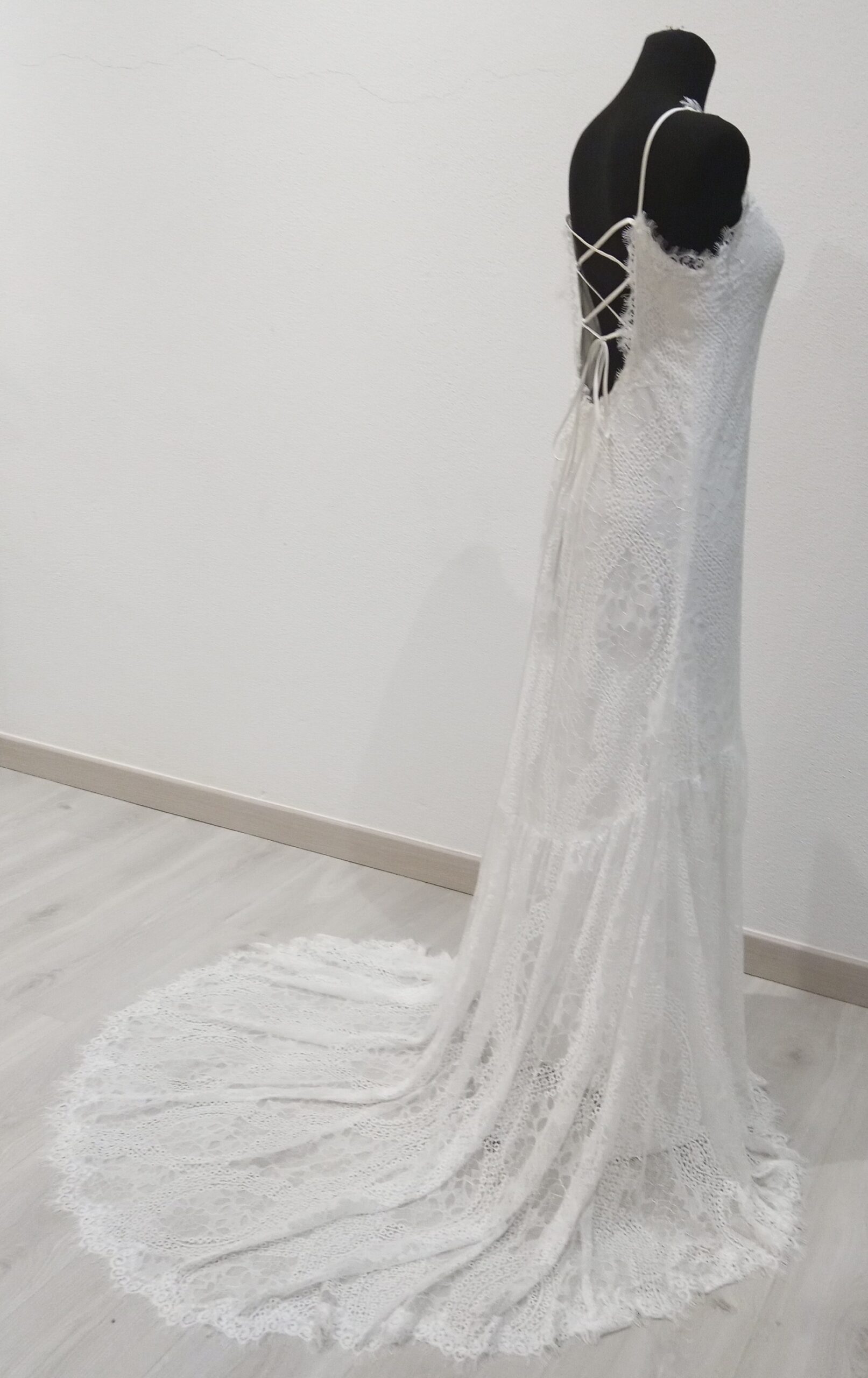 Vestido de Noiva Boho Chic | Decote Fechado | Renda Chantilly | Costas Abertas com alças finas Cruzadas